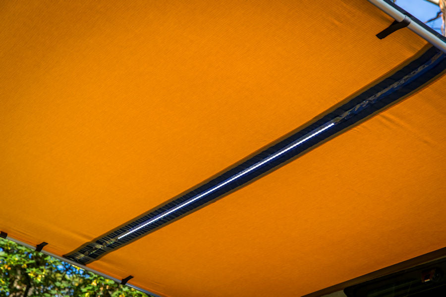 LED svetelný pás poskytuje až 1200 lúmenov, s možnosťou výberu z dvoch rôznych farebných režimov (studená biela alebo jantárová) a stmievacieho spínača, všetko napájané cez zabezpečenú 12V zásuvku.